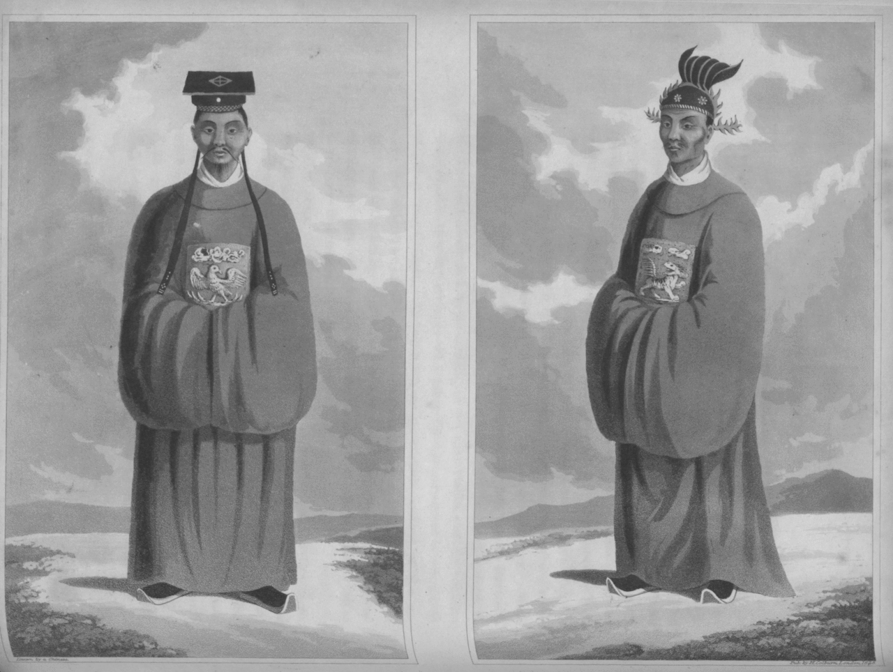 Nón bánh tiêu bên trái (Bonnet), và (mortarboard) bên phải